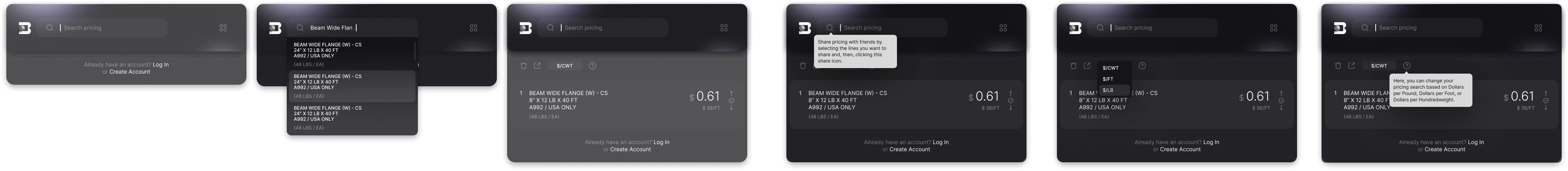 Users are able to price search any single item at a time without creating an account.